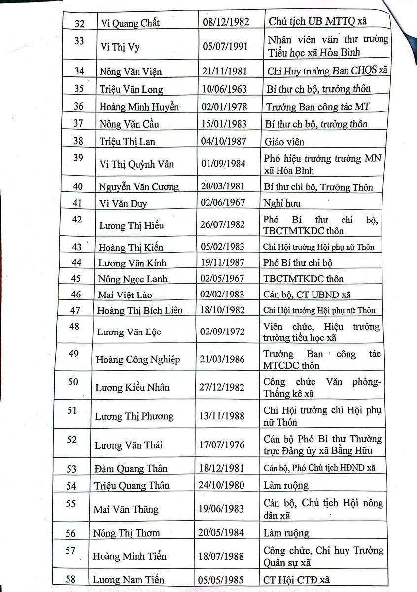 Các đại biểu HĐND xã gồm nhiều thành phần: cán bộ lãnh đạo Đảng, chính quyền, Mặt trận Tổ quốc, các đoàn thể, cán bộ chuyên môn, chiến sĩ lực lượng vũ trang, giáo viên, nông dân tiêu biểu bảo đảm tính đại diện rộng rãi, công bằng và dân chủ.