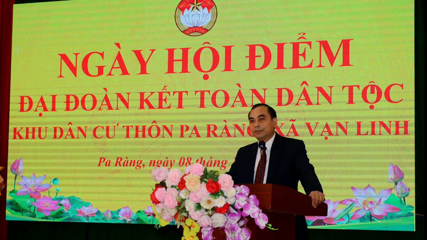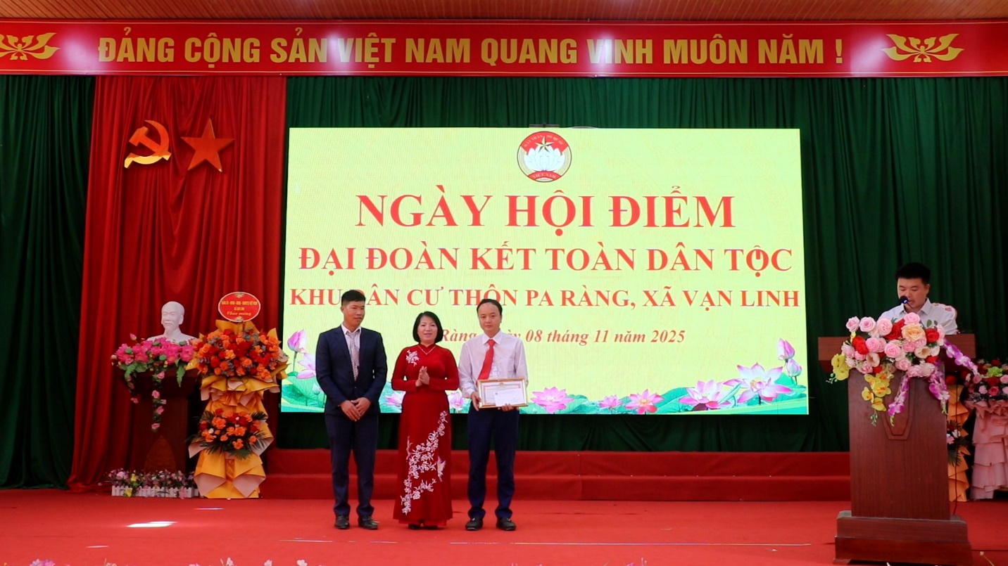 Ngày 8/11, tại Hội trường Đảng ủy xã Vạn Linh, Khu dân cư thôn Pa Ràng, xã Vạn Linh đã tổ chức Ngày hội Đại đoàn kết toàn dân tộc nhân kỷ niệm 95 năm Ngày thành lập Mặt trận Dân tộc thống nhất Việt Nam (18/11/1930 – 18/11/2025). Đây là khu dân cư được xã chọn tổ chức ngày hội điểm. Dự ngày hội có đồng chí Hoàng Xuân Anh, Bí thư Đảng ủy, Chủ tịch HĐND xã; đồng chí Khổng Văn Mạnh, Phó Bí thư Thường trực Đảng ủy xã; đồng chí Nguyễn Mai Huyền, Phó Bí thư Đảng ủy, Chủ tịch UBND xã; đồng chí Cáp Trọng Lương, Ủy viên Ban Thường vụ, Chủ tịch UBMTTQ Việt Nam xã; các đồng chí lãnh đạo Đảng ủy, HĐND,UBND, UBMTTQ xã; Trưởng Ban công tác mặt trận của 27 thôn trên địa bàn; Lãnh đạo một số cơ quan đơn vị, trường học, doanh nghiệp cùng đông đảo bà con nhân dân các dân tộc trong thôn.