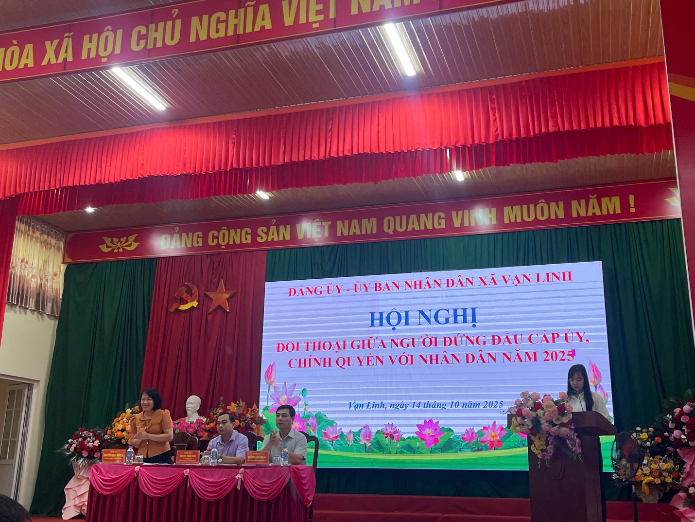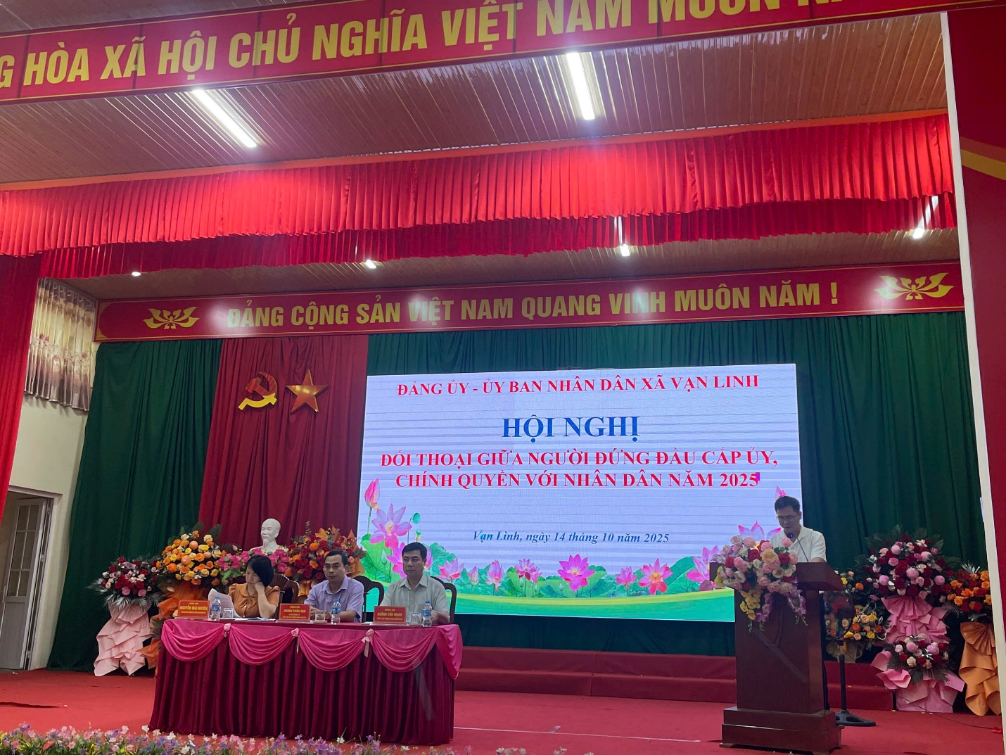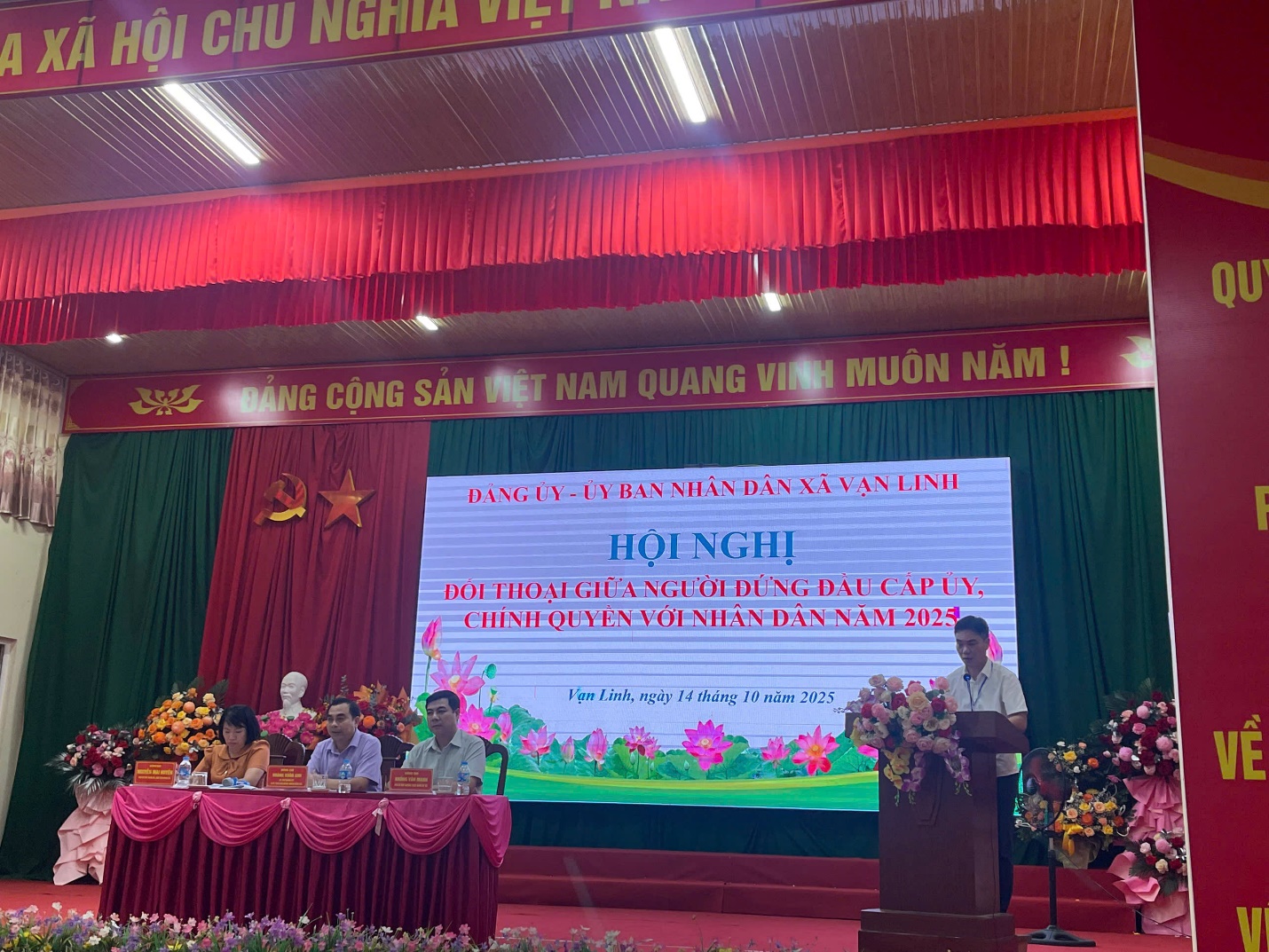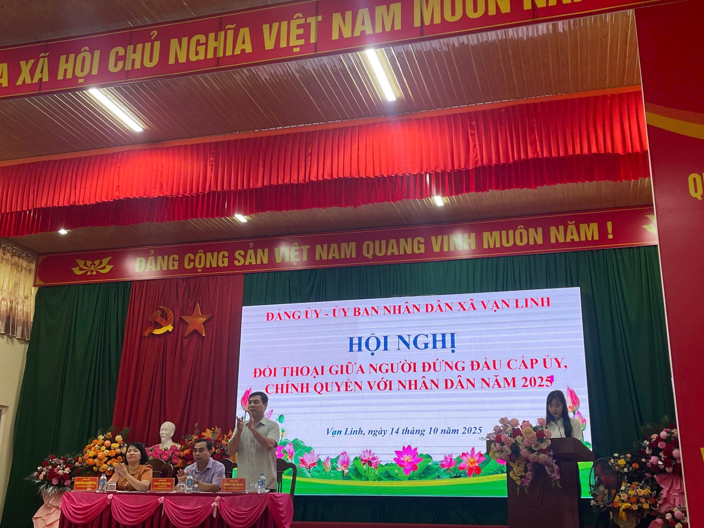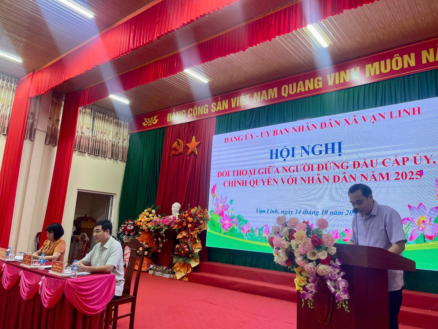 Thực hiện Quy chế dân chủ ở cơ sở, Chiều ngày 14 tháng 10 năm 2025, UBND xã Vạn Linh tổ chức Hội nghị đối thoại giữa người đứng đầu cấp ủy, chính quyền với nhân dân năm 2025.